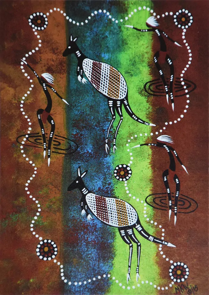 2 Kangaroos - POSTCARD - Dreamtime Kullilla Aboriginal Art