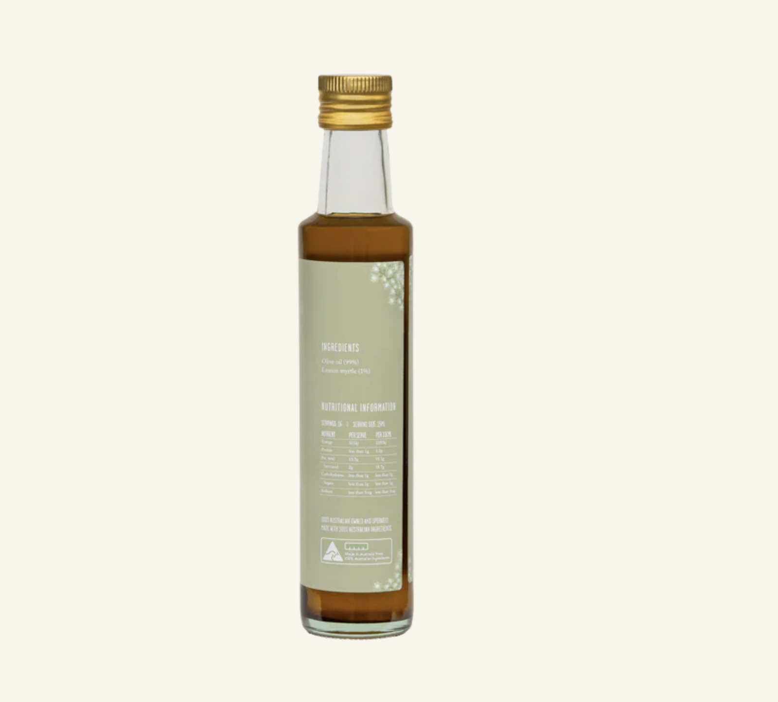 Olive Oil infused with Organic Lemon Myrtle delivers a fresh citrus taste to your meal, cook with it or sprinkle on a salad.