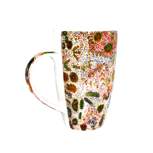 Bush medicine knowledge is still strong in Ampilatwatja and it continues to be passed down to the younger generations. It is widely used and when the ladies go hunting they often gather bush medicine. The plants depicted here are found in the country around Ampilatwatja, they are used for soothing skin infections and to make a drink to help with colds and coughs. Painting bush medicine stories is important to Julieanne because it helps to maintain a strong knowledge and culture. Julieannes’ grandmother is respected elder of the community, Lilly Morton, and is highly regarded for her deep knowledge of bush medicines.