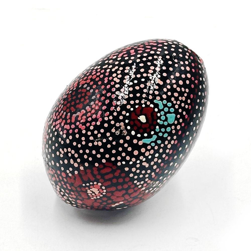 They are made from government certified sustainable timber and decorated using the age old Kashmiri Kar e Kalamdani, hand painting handed down by Persian master artisans . These eggs now come packaged in a printed muslin bag. Cross Cultural Project - cultural & economic exchange between Australian Aboriginal Artists & traditional cottage industry artisans in Kashmir