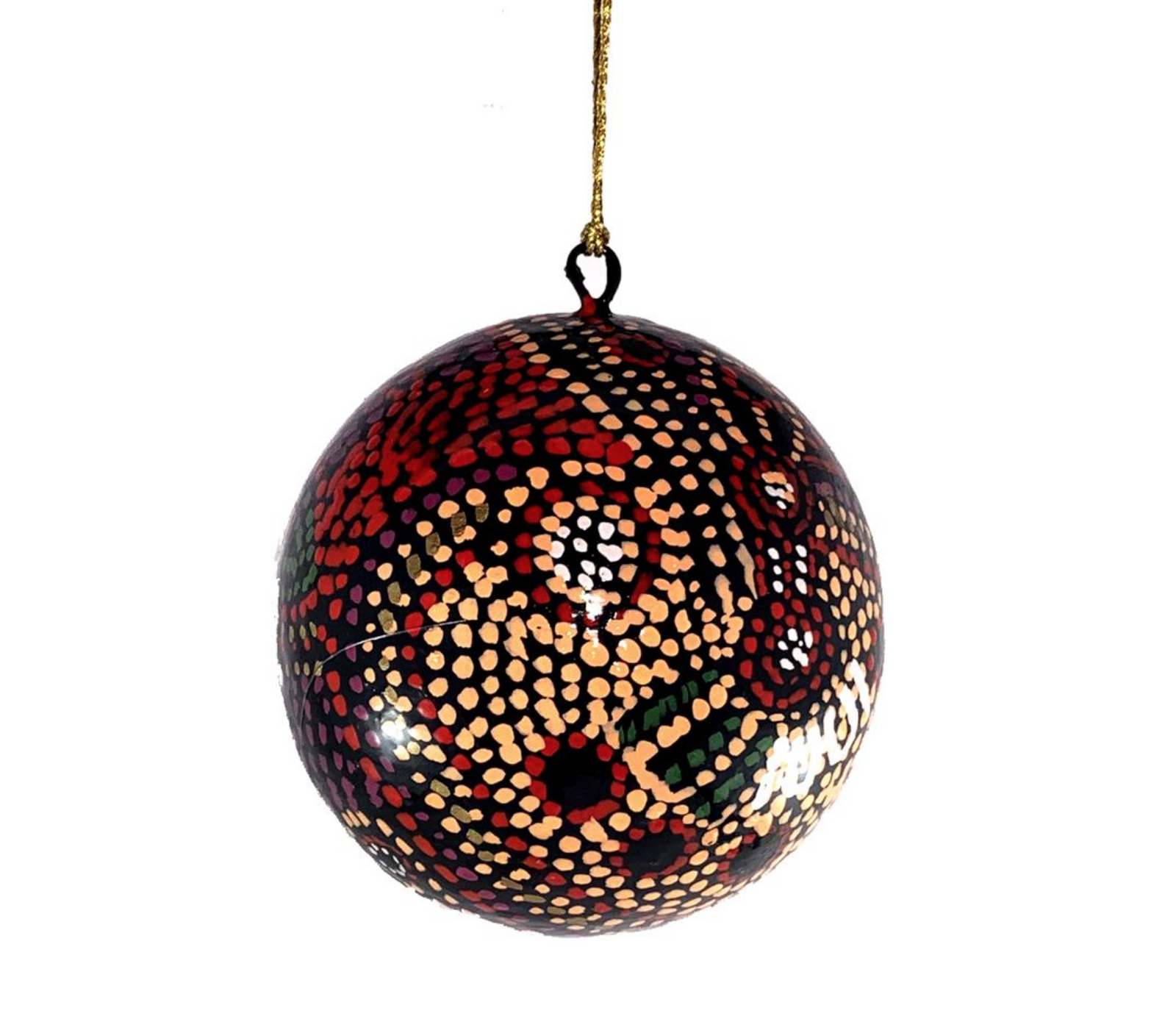 Handmade Xmas Decorations using recycled paper, traditional, hand-painted and lacquered Kashmiri handicrafts are united with Aboriginal designers. Each decoration comes with its own tag about the Artist and the design.