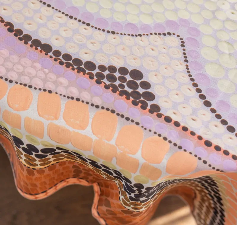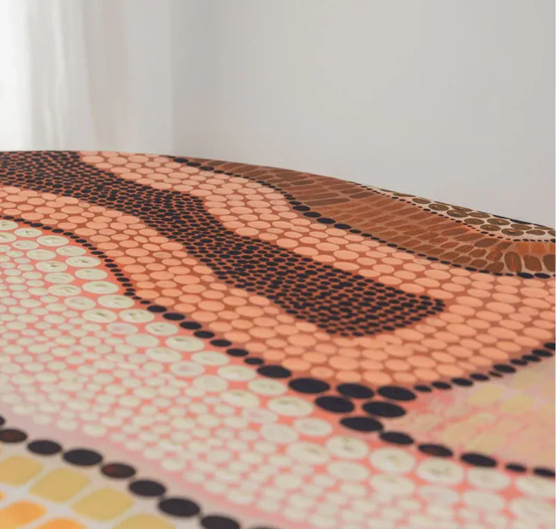 Kamilya Lowana White is a proud Aboriginal artist, born, raised and creating artworks in Naarm (Melbourne) on Wurundjeri Country. Ever since she was a child, she has been passionate about art, and enjoys creating with and exploring a range of techniques and mediums. Stemming from her Kija Bardi heritage, Kamilya is particularly interested in creating contemporary Aboriginal paintings, inspired by the land, storytelling and relationships with others, all depicted with a modern twist. Kamilya finds this specific art style therapeutic and uses it to express and ground herself, while deepening her connection with culture.