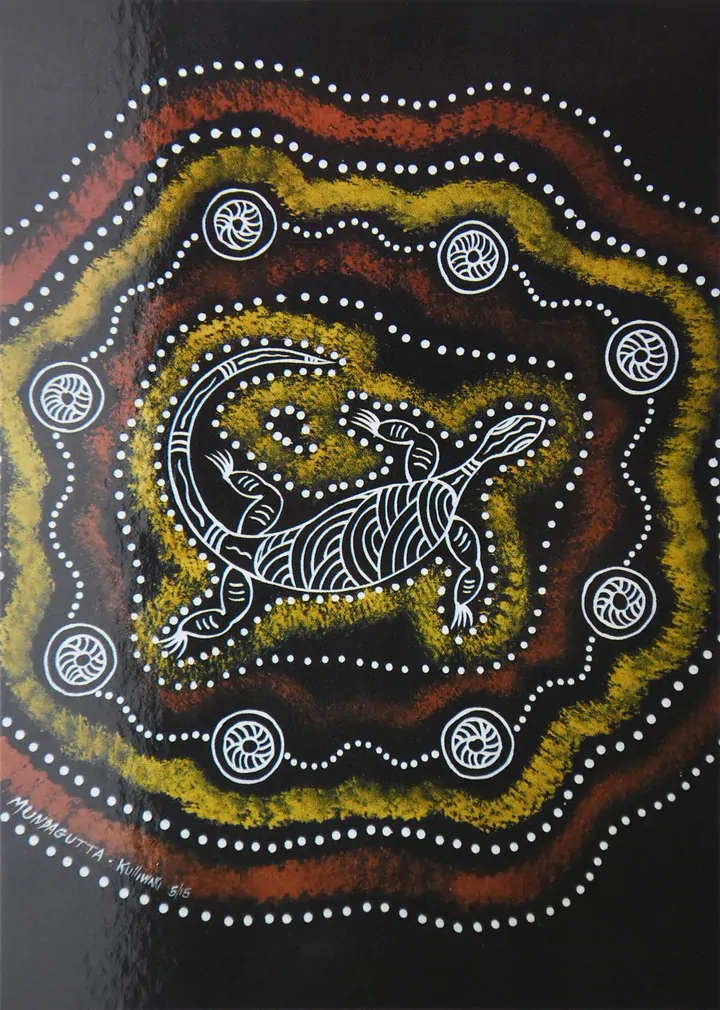 Black Canvas Lizard  - POSTCARD - Dreamtime Kullilla Aboriginal Art