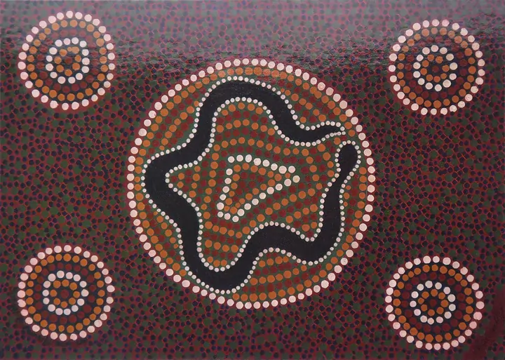 NOTE TO CUSTOMER:  This is a PRINT of the original authentic Aboriginal Art handpainted by an Australian Aborignal Artist - each dot and stroke on this canvas has a cultural link that goes back to the First Time and an ancient story embedded especially for you.  Buying from the original artist/Dreamtime Kullilla-Art guarantees this