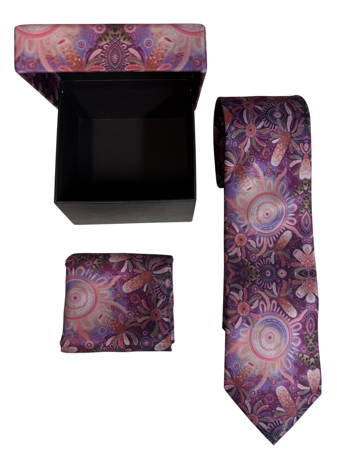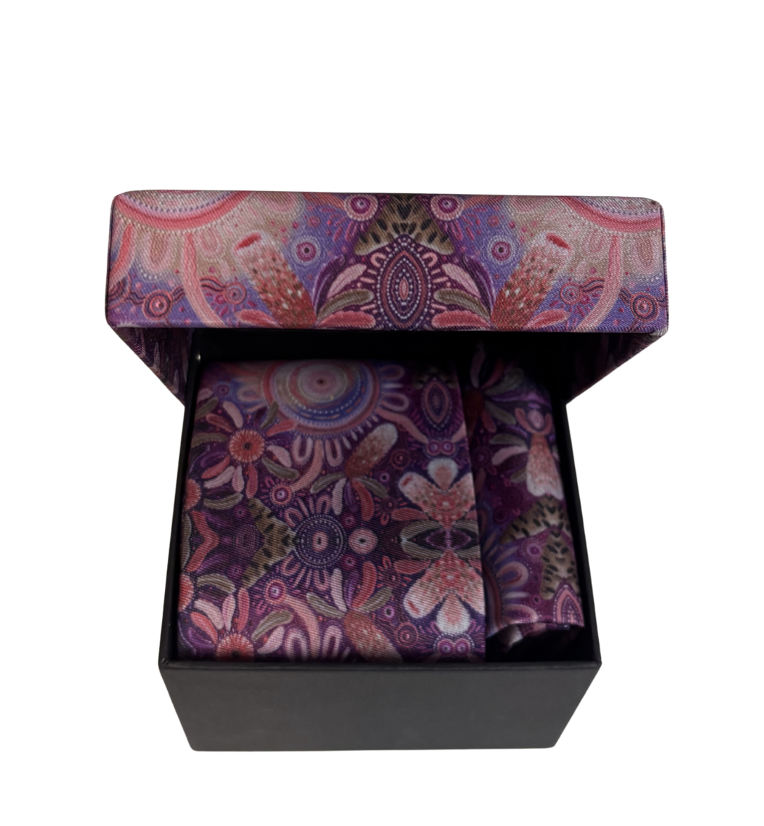 This tie set merges sophistication with cultural significane, featuring a tie with matching pocket square adorned with matching artwork.