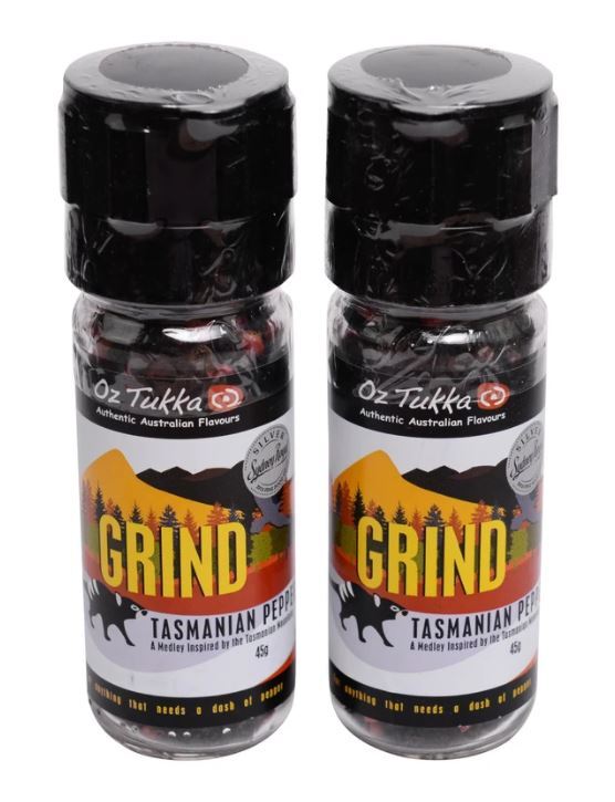 Oz Tukka Tasmanian Pepper Medley - the intense fruity flavour of the Oz Tukka Tasmannia Pepper Berry balanced with traditional black and pink pepper corns.