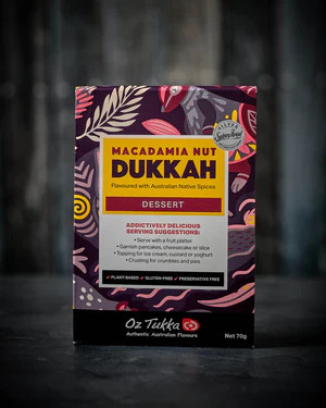 A twist to the more traditional dukkah, is this sweet version using native Australian macadamia nuts, sesame seeds, and a mix of native spices. Macadamia Nut Dukkah for Desserts is fantastic as a topping for ice cream, custard, fruit salad, or yogurt, or any crusted dessert. A new take on the usual fruit platter - use vanilla yogurt mixed with Wattle Seed, dunk a slice of fruit in the yoghurt mix, then in Macadamia Nut Dukkah for Desserts. Yum! (gluten free)