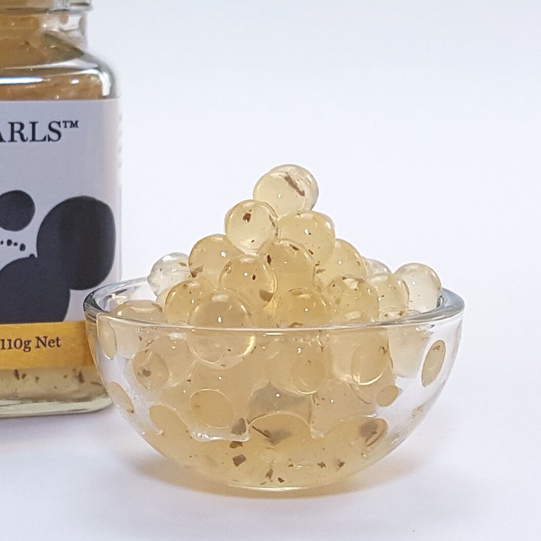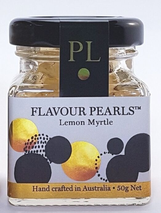 Lemon Myrtle Flavour Pearls. Lemon Myrtle is an Australian native bush food similar in taste to a blend of lemon verbena, lemongrass and kaffir lime with an ever so slight eucalyptus background. Just delicious with seafood, white meats and salads alike. A fresh burst for sweet dishes too.