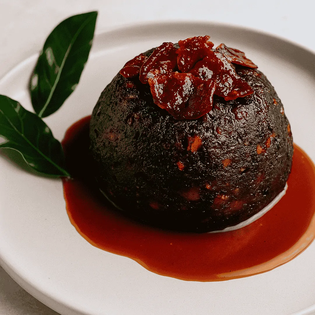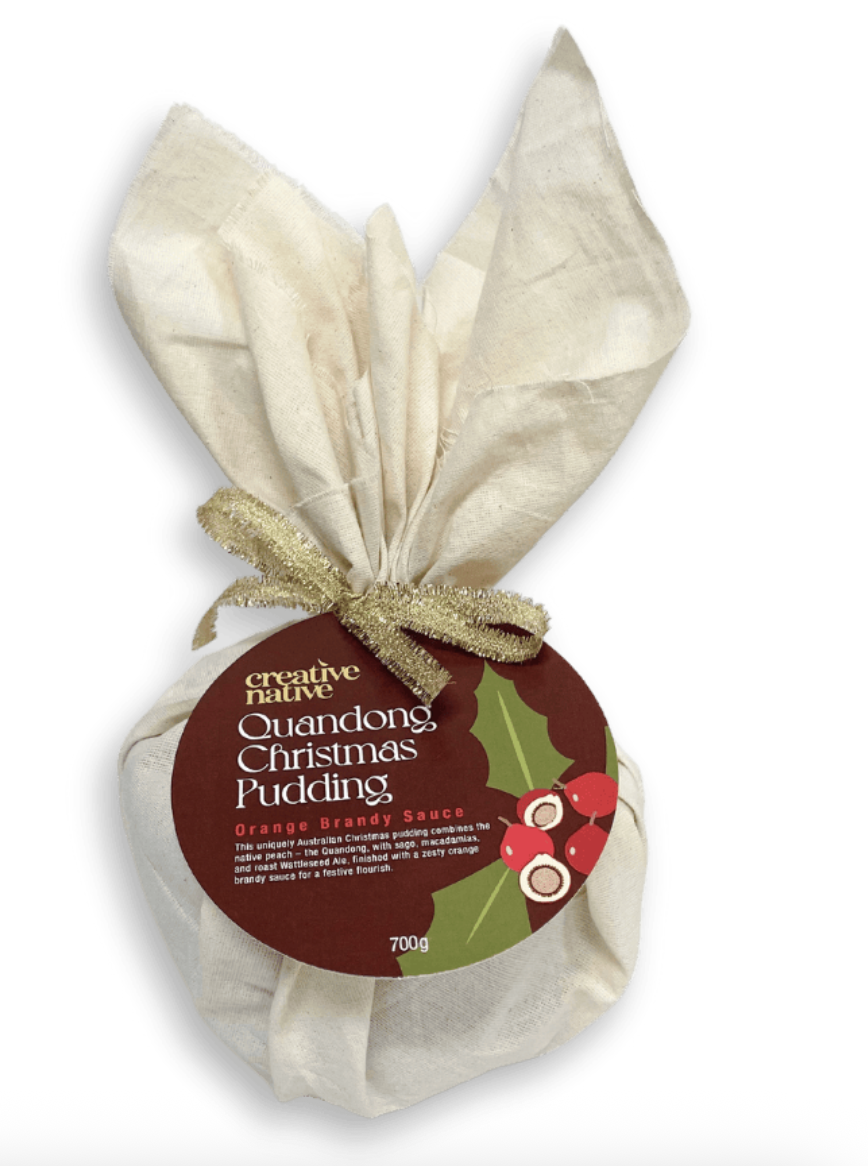 This quintessentially Australian Christmas pudding is a celebration of textures and flavours, bursting with plump Riverland fruits, tender sago pearls, and buttery native Macadamia nuts. At its heart is the prized desert peach, the Quandong, which beautifully complements the nutty depth of roasted Wattleseed. A final flourish of vibrant orange brandy sauce cuts through the richness, adding a zesty contrast to this indulgent, festive treat.