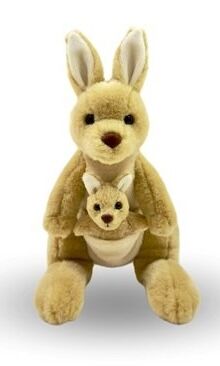 Fun and cuddly Kangaroo with Joey in her pouch plush toy. Soft and ready for cuddles stuffed animal by C A Australia