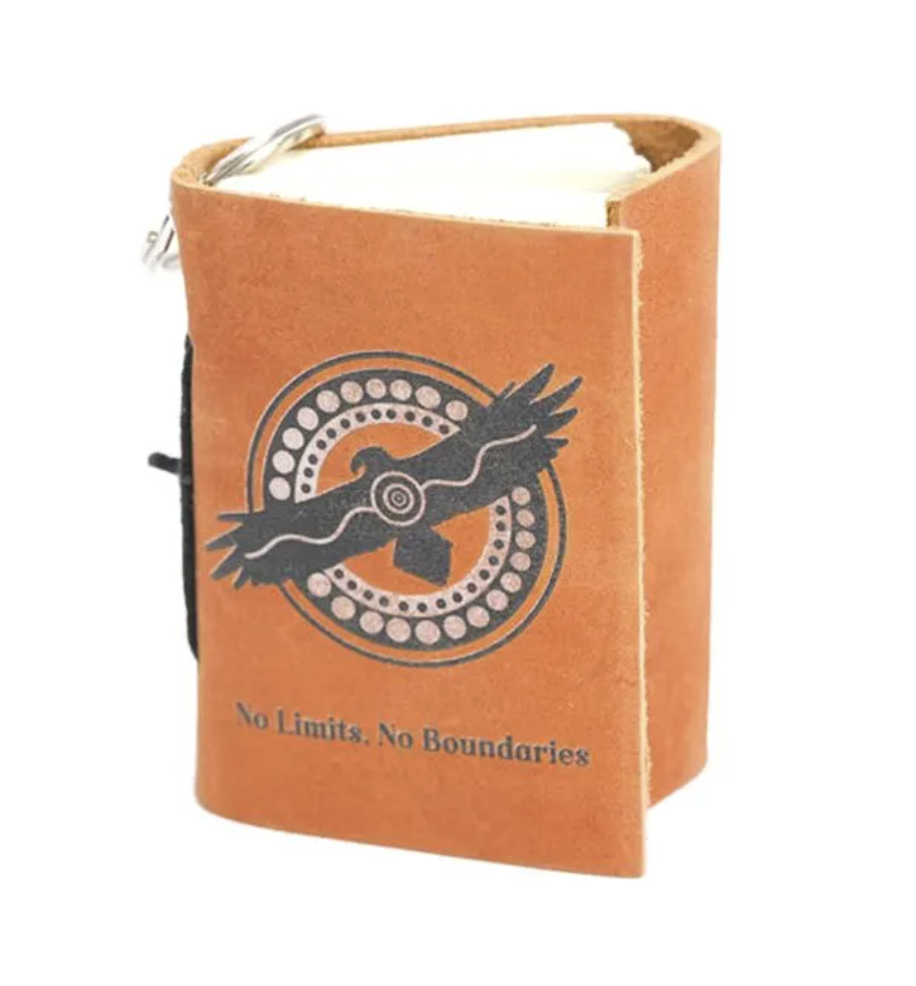 This compact leather-bound mini diary features cheerful embossed Australian icons and and uplifting messages. Handcrafted with textured leather, it includes unlined pages, a wrap tie closure, and a keyring for easy attachment to bags or keys. Perfect as a keepsake, travel journal, or thoughtful Australian-themed gift