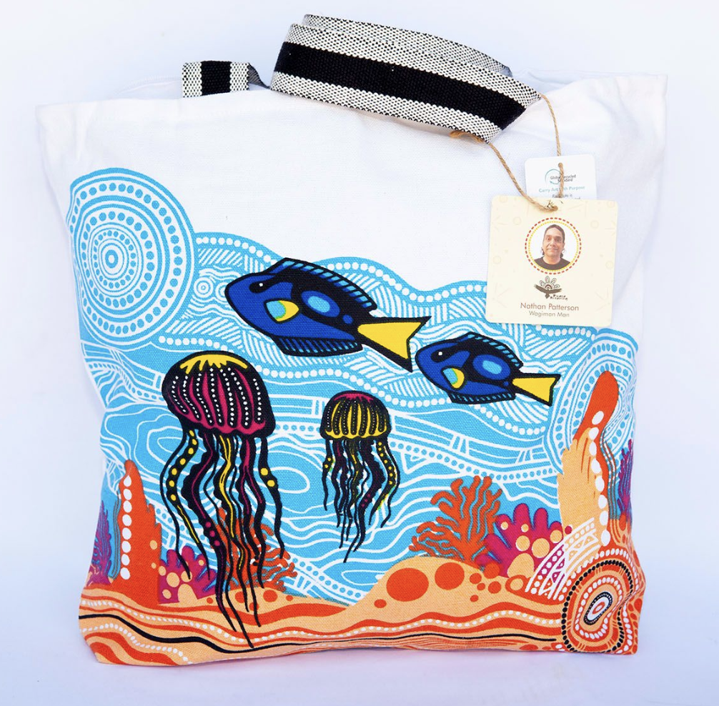 The art is contemporary, yet classic blended cleverly with the bag design. More importantly, part of the purchase price goes directly to the Indigenous artist.
