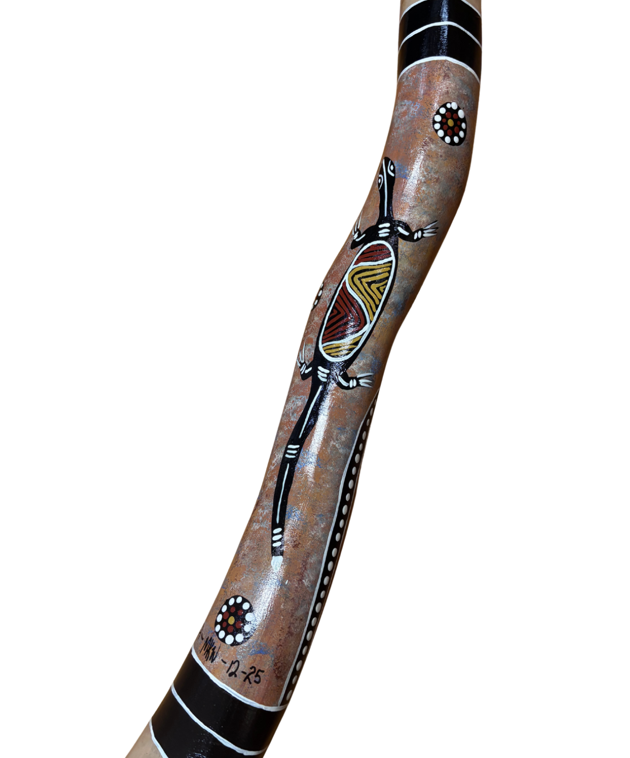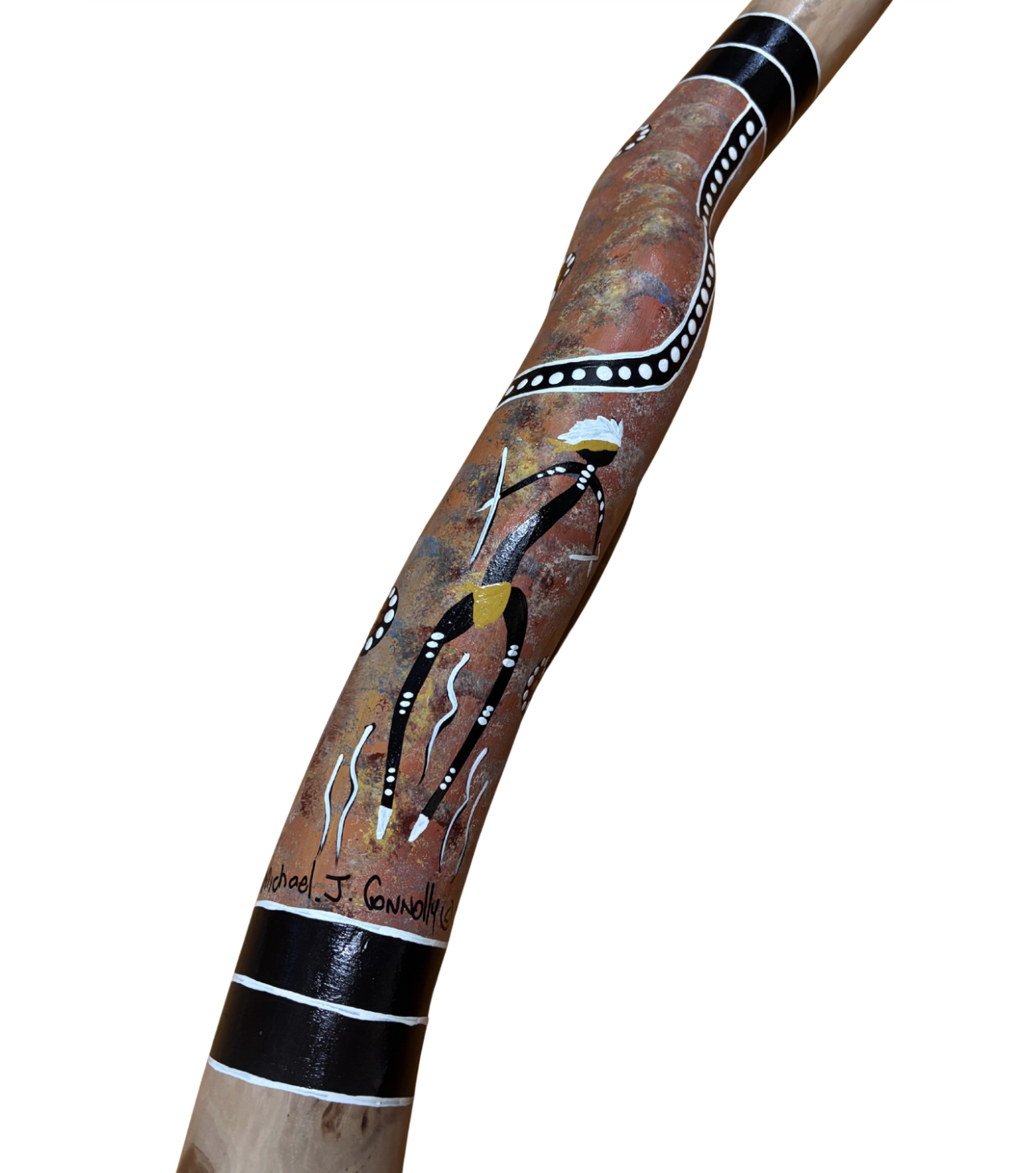 Handcrafted and handpainted by Michael J Connolly using natural termite hollowed eucalyptus timber