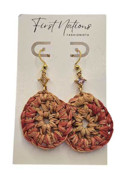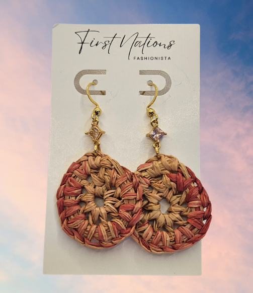 Died raffia hand woven round earrings.