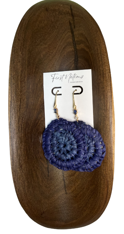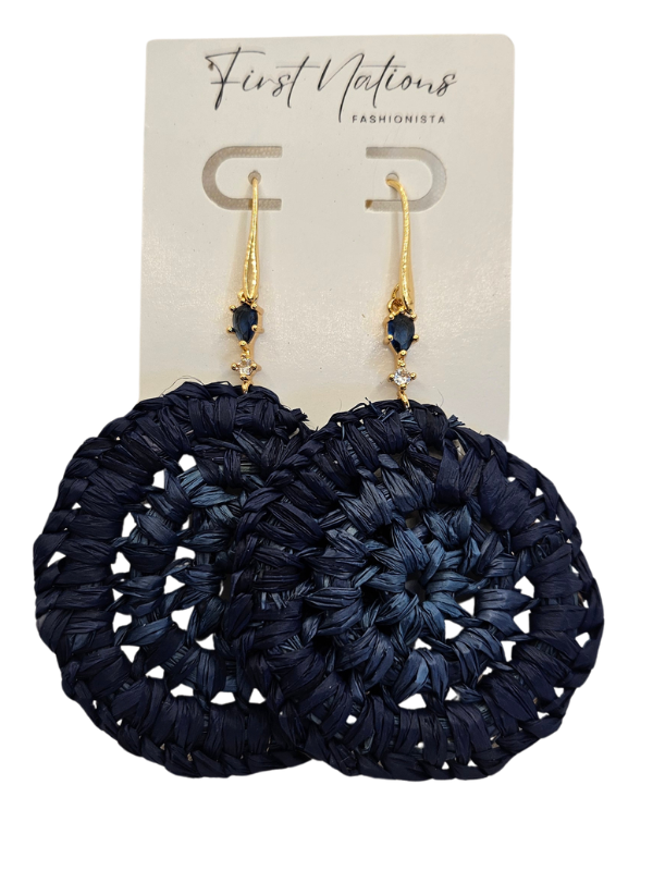 Died raffia hand woven round earrings - 55mm