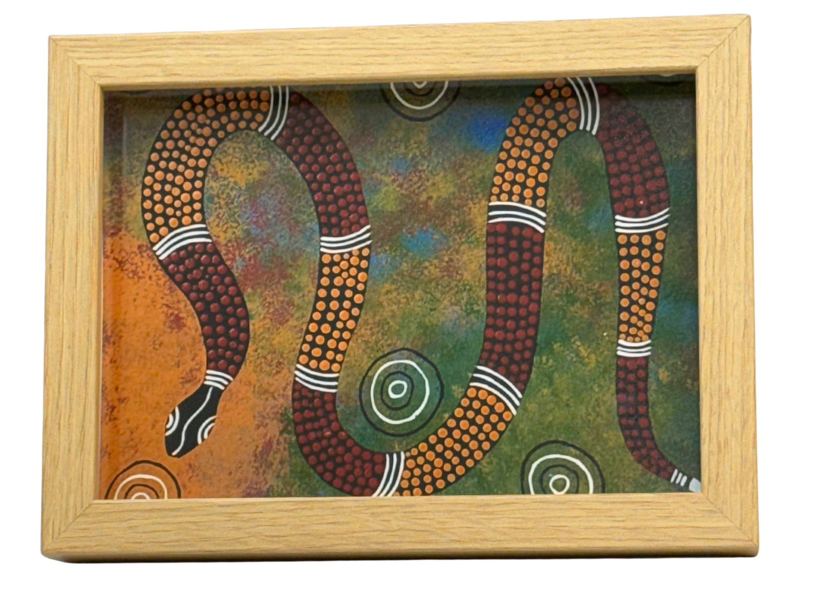 Framed Aboriginal Art Print (15cm x 20cm) - the Great Watersnake by Michael J Connolly (Munda-gutta Kulliwari)