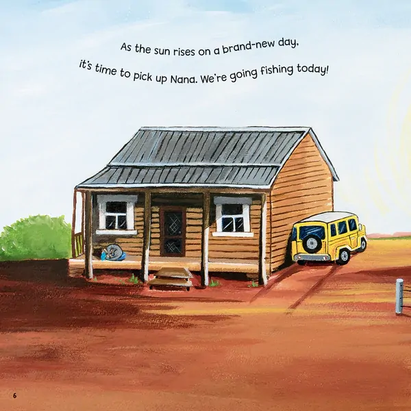 This beautifully illustrated children’s picture book takes readers on an exciting fishing trip with Nana in the far north of Australia. Through repetition and rhyme, readers are introduced to early education concepts such as ordinal numbers, counting by twos, and adjectives, all while seeing many cute and cheeky outback animals along the way.