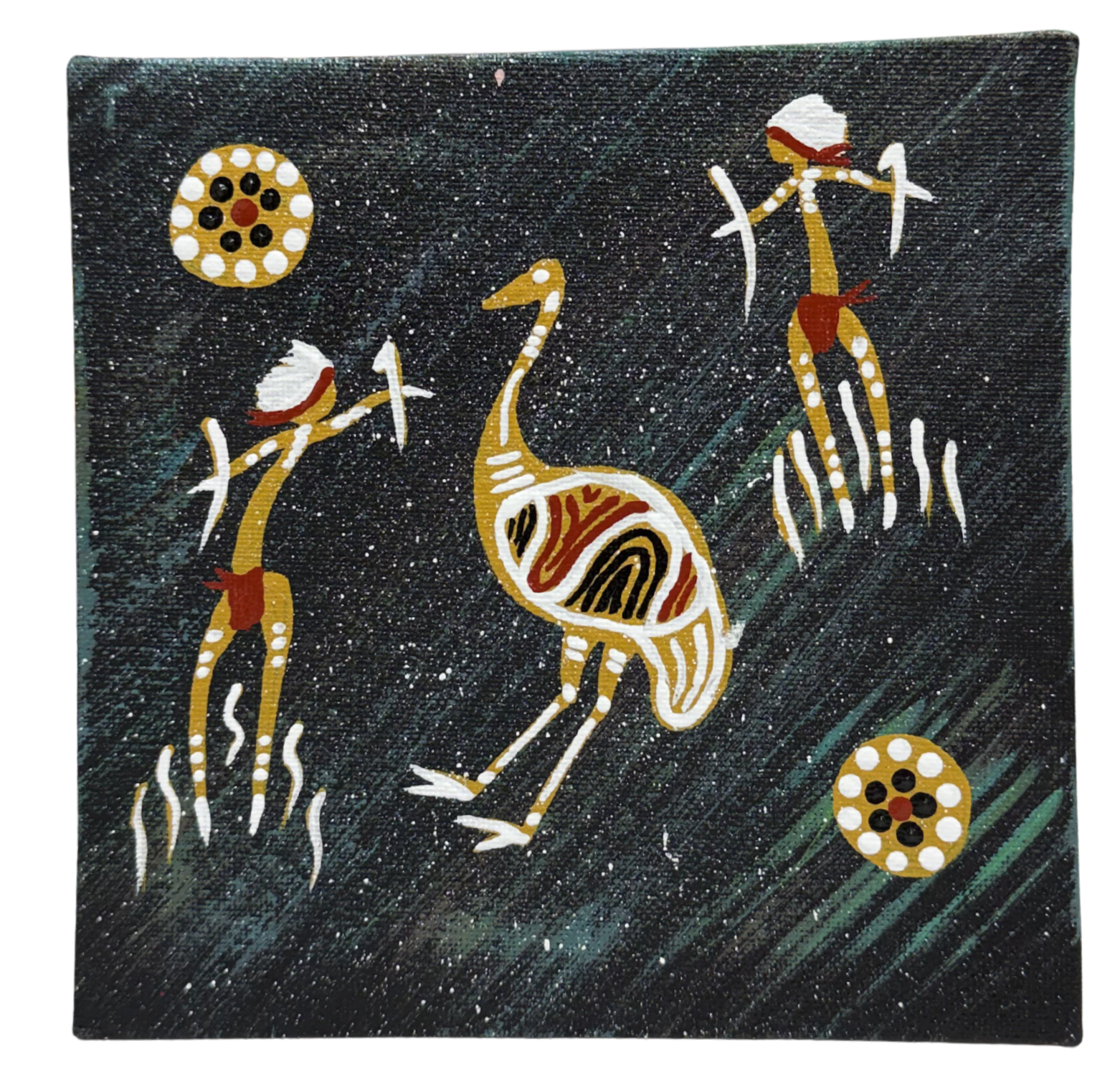 Handpainted Aboriginal Art Black Canvas (15cm x 15cm) - Emu by Michael J Connolly (Munda-gutta Kulliwari)