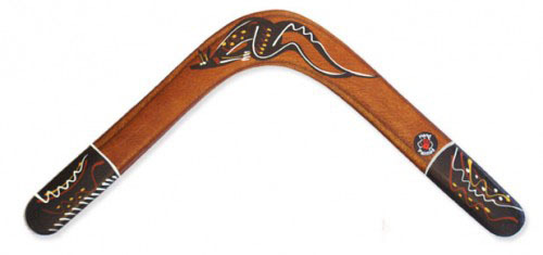 Handpainted returning Boomerangs decorated in traditional colours & various designs - 3 layered plywood