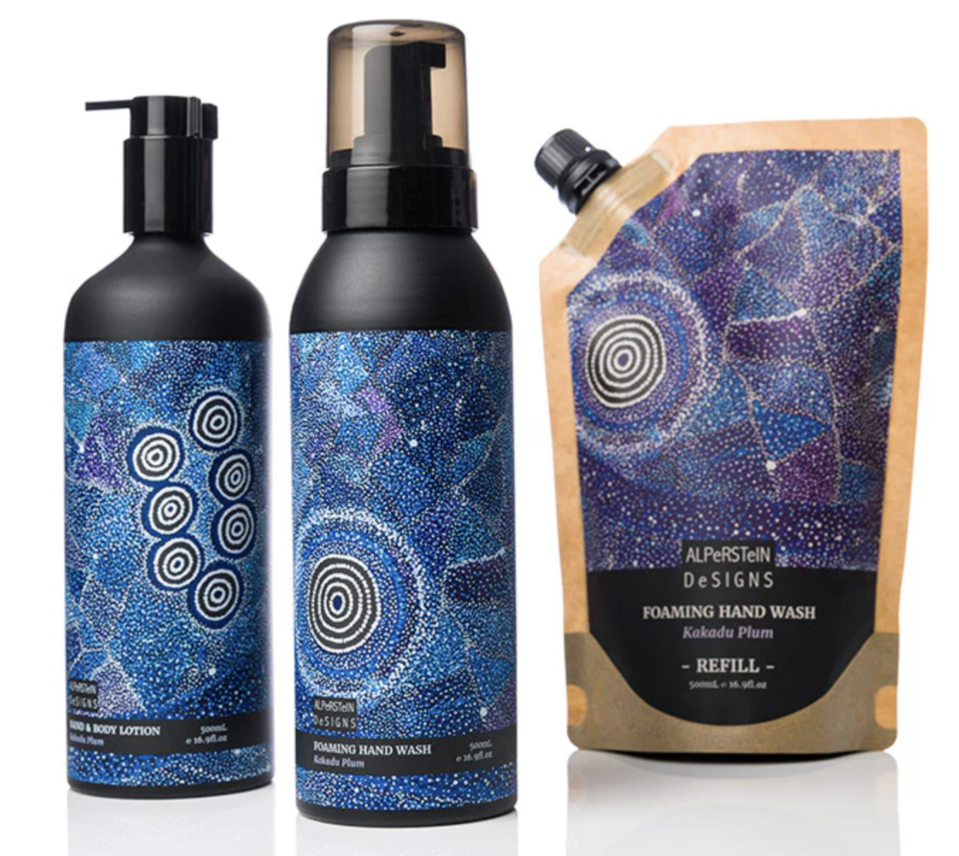 Foaming Hand Wash features licensed artwork by Alma Nungarrayi Granites from Warlukurlangu Artists. Established in 1985 Warlukurlangu Artists Aboriginal Corporation is a not-for-profit organisation that is 100% Aboriginal-owned by its artists from the remote desert communities of Yuendumu and Nyirripi in Central Australia..