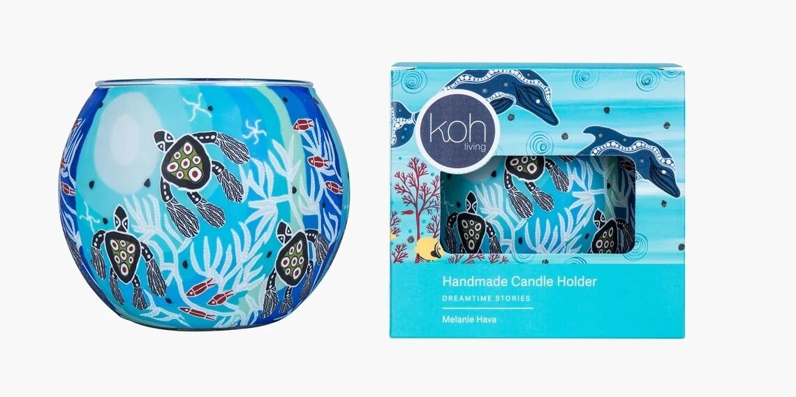 This Dolphin candle holder is hand-made from glass and a layer of clay then beautifully gift boxed with a story card inside. The clay allows the candle flame to illuminate through and radiate the magnificent colours of the designs, captivating any space when using tealights