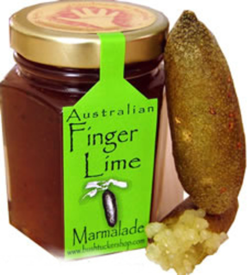 A strong, aromatic & bitter marmalade featuring the amazing tang of the Finger Lime. Best served on sourdough or rye toast. Use as a baste for lamb, turkey or duck. Finger Lime is a spiky rainforest tree from the lush hinterland of Byron Bay. The fruit has little balls like caviar