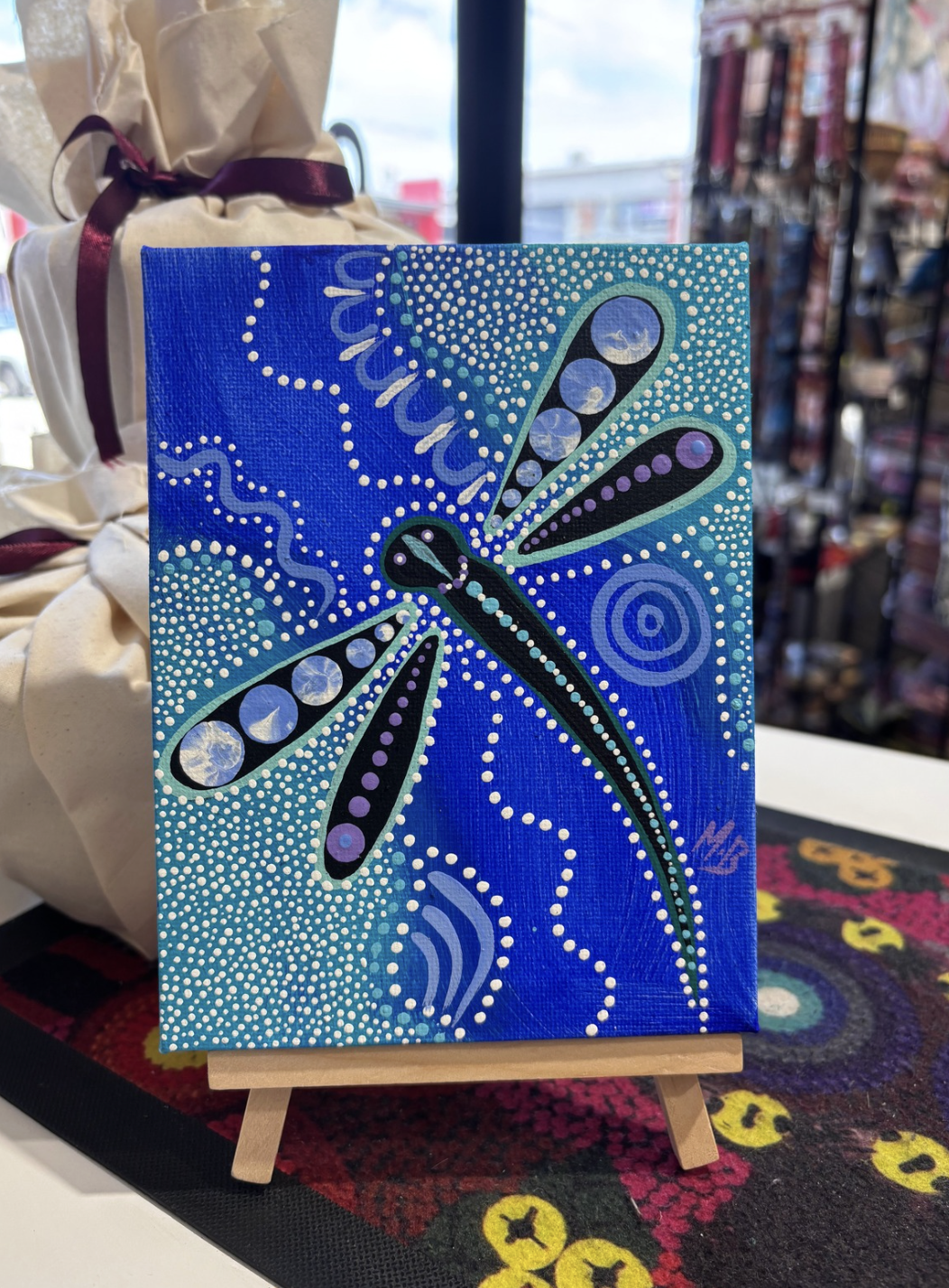 Acrylic on Stretched Canvas - 12 x 16 x 1cm with timber easel stand