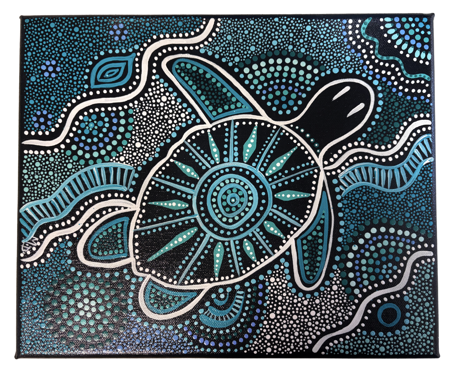 Maree Bradbury Aboriginal Art Stretched Canvas (25cm x 30cm) - Turtle