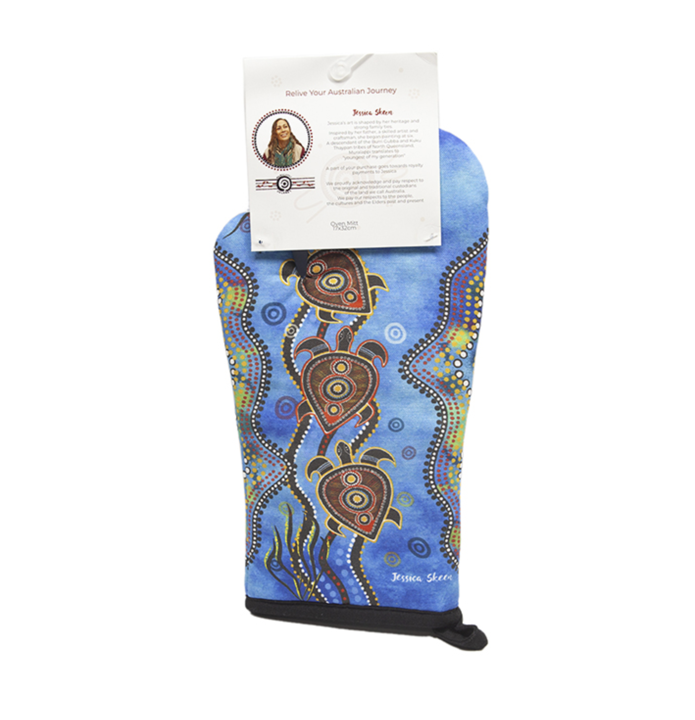 A descendant of the Burri Gubba and Kuku Typan tribes of North Queensland, Muralappi (Jessica Skeen-Mckinnon) was born into a family of talented artists and craftspeople. The name Muralappi translates to “youngest of my generation”, being the youngest of 14 children. Jessica has painting since she was seven. Inspired by her father, she has evolved her artistic talent into one which reflects on nature and a message of identity – questioning our roots and belonging. Her art uses traditional motifs and colours from the desert, rainforests and oceans of Queensland.