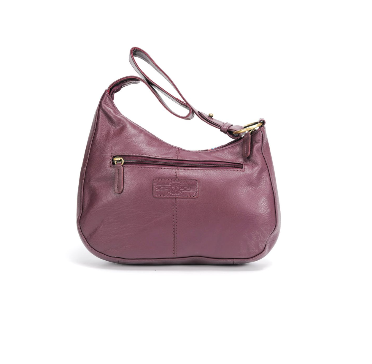 Featuring a strong leather strap and quality zippers and embellishments with a zippered exterior pocket at the rear.