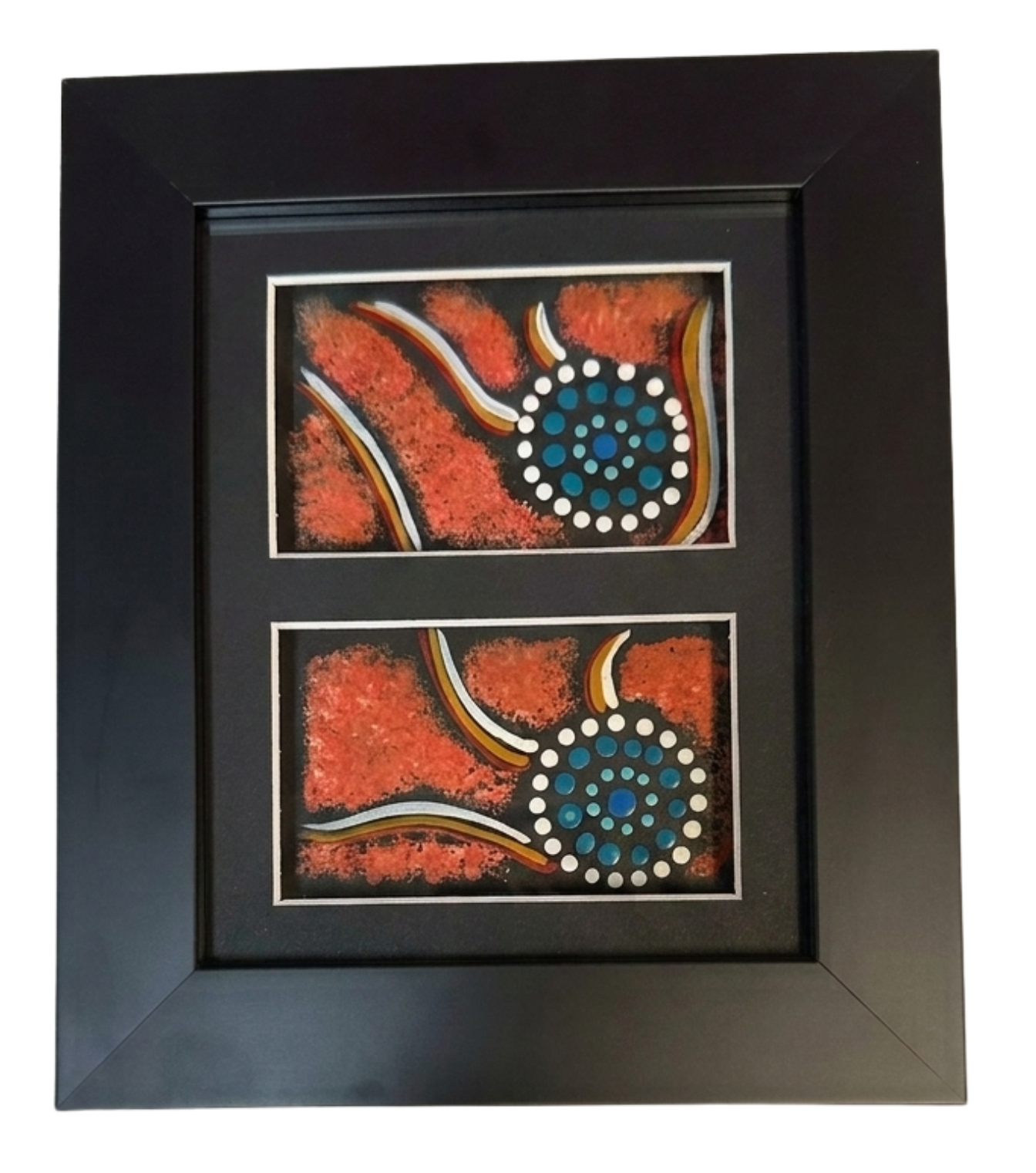 Danielle Tanner is a proud Gurang, Gooreng Gooreng, Kabi Kabi and South Sea islander woman. She represents this in her painting’s as staying connected through, dance, stories, language and more. Danielle is an artist for Murra Wolka Creations she has been painting for Murra Wolka for about 2 years now and she absolutely loves it. Danielle is open to keep learning and excelling her artistic skills. She also creates her own artwork when she has the time. As a Murra Wolka artist she hand paints boomerangs, rock art, hardwood boomerangs and matboards.