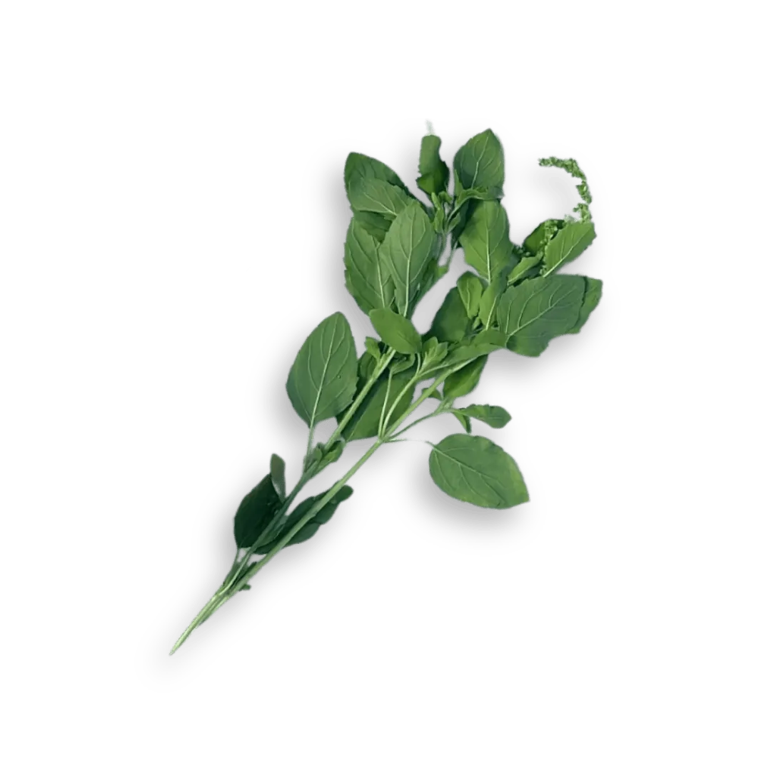 Occurring naturally along the arid regions of northern Australia, Native Basil, also known as wild basil or ‘bubble gum’ basil, is closely related to Asian holy basil, and bares many similarities. When its large leaves are crushed or milled, they release a powerful aroma of basil and bubble gum, with minty undertones. Flavour-wise, it boasts a palate of sweet basil, with a mild spice. This captivating herb is best applied in Asian style dishes- wherever Thai basil is called for. Start with a small amount and adjust to taste, as the flavours can be quite intense.