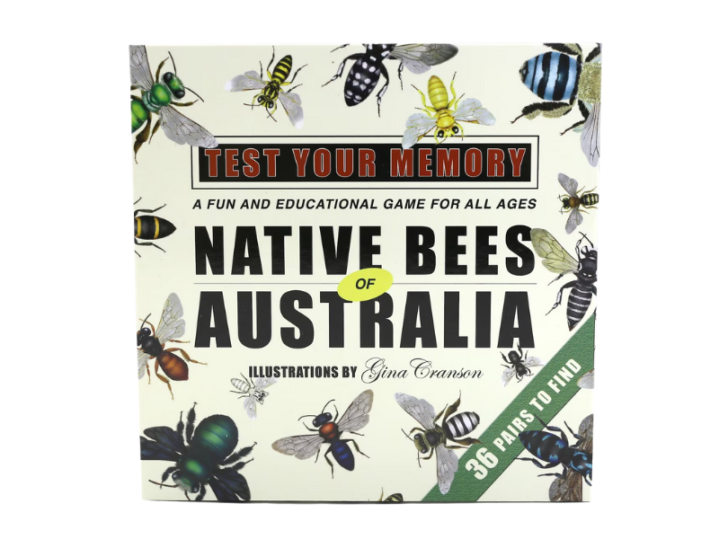 Test your memory and have fun while discovering 36 of Australia's beautiful native bee species. This game features 36 pairs of bees (72 tiles), illustrated lovingly by natural history illustrator Gina Cranson. One card in each pair shows the bee's scientific name, and the other carries the bee's common name. Suitable for all ages.