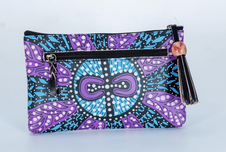 This purse is not mass-produced, but rather individually created through hand crafting and hand painting adding a unique and artistic touch to each piece, making it stand out from factory-made items. Made from leather, a durable and luxurious material that adds a sense of elegance and sophistication to the accessory. The purse serves multiple functions, acting as both a vanity case and a utility pouch. A vanity case typically holds cosmetics and toiletries, while a utility pouch can store a wide range of personal items. Showcasing meticulous craftsmanship, which contributes to the purse's overall quality and durability.