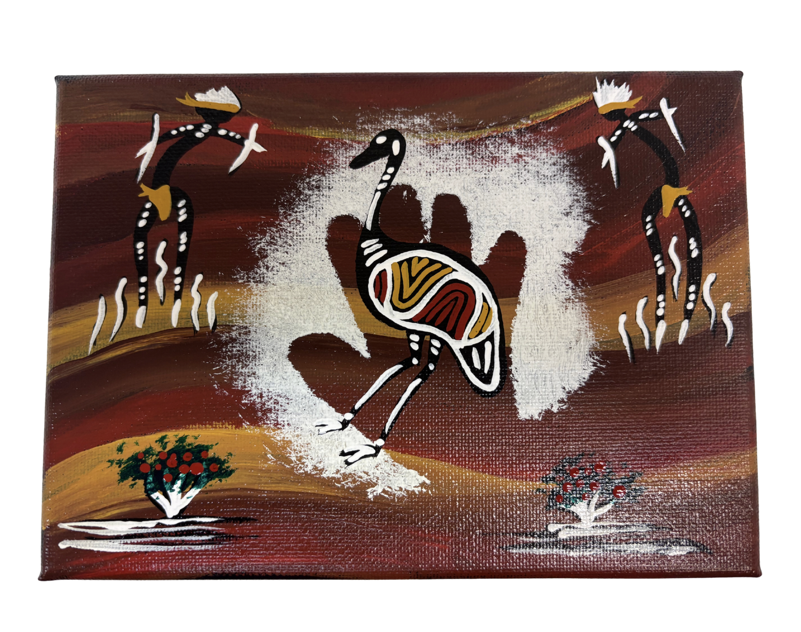 Original Aboriginal Art Stretched Canvas (18cm x 13cm) - Emu by Michael J Connolly (Munda-gutta Kulliwari)