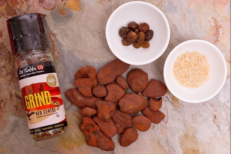 Ingredients: artesian salt, tomato, bush tomato, red bell pepper, thyme, onion, garlic, native mint