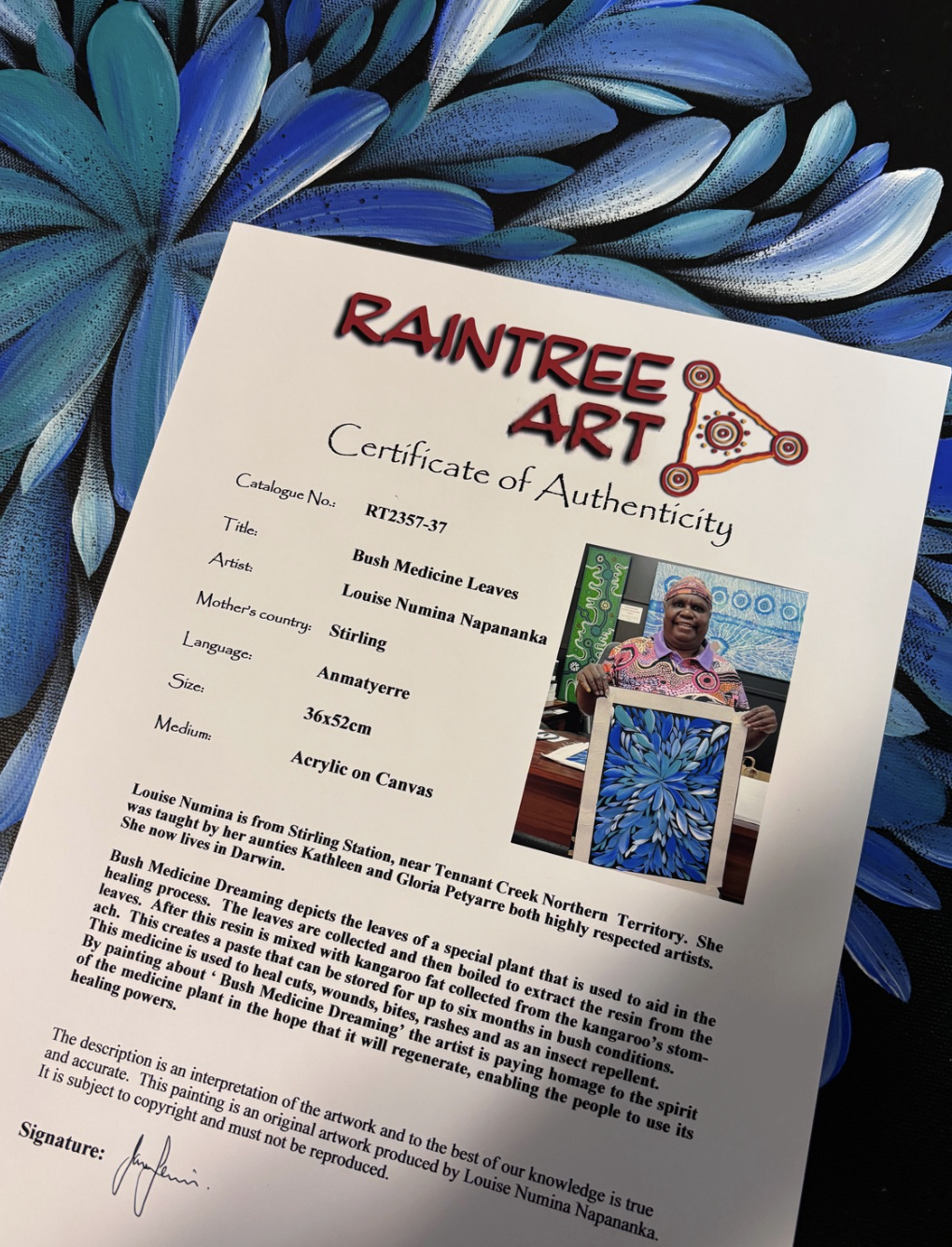 Louise is one of the celebrated Numina sisters, whose bold, confident, and colourful paintings are enjoyed in homes throughout Australia and all over the world. Her sisters are Sharon, Selina, Caroline, Jacinta and Lanita – and each of the Numina sisters are highly regarded Aboriginal Artists in their own right. Louise, her sisters and two brothers are the children of Barbara Pananka Price and the late Douglas Petyarre, and it was two of Douglas’ sisters – the internationally-renowned Aboriginal Artists Gloria and Kathleen Petyarre – who taught their nieces to paint the Bush Medicine Leaf ceremony (Aunty Gloria) and Thorny Lizard Dreaming (Aunty Kathleen). The Numina Sisters are also the great nieces of Emily Kngawarreye and Kudditji Kngawarreye, who along with Minnie Pwerle and Ada Bird Petyarre, are the most internationally acclaimed artists of the Aboriginal Art Movement of the Utopia Aboriginal Lands of the Eastern Desert that emerged in the 1970s.