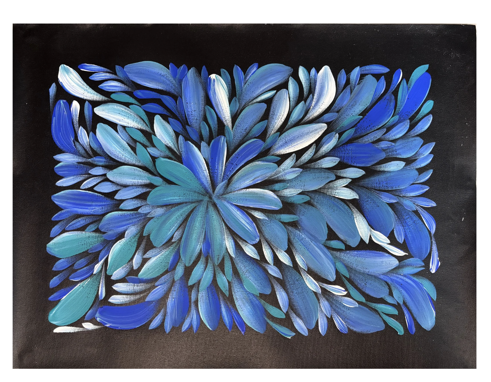 Raintree Aboriginal Art UNStretched Canvas (60cm x 45cm) - Bush Medicine Leaves (Blue) by Louise Numina
