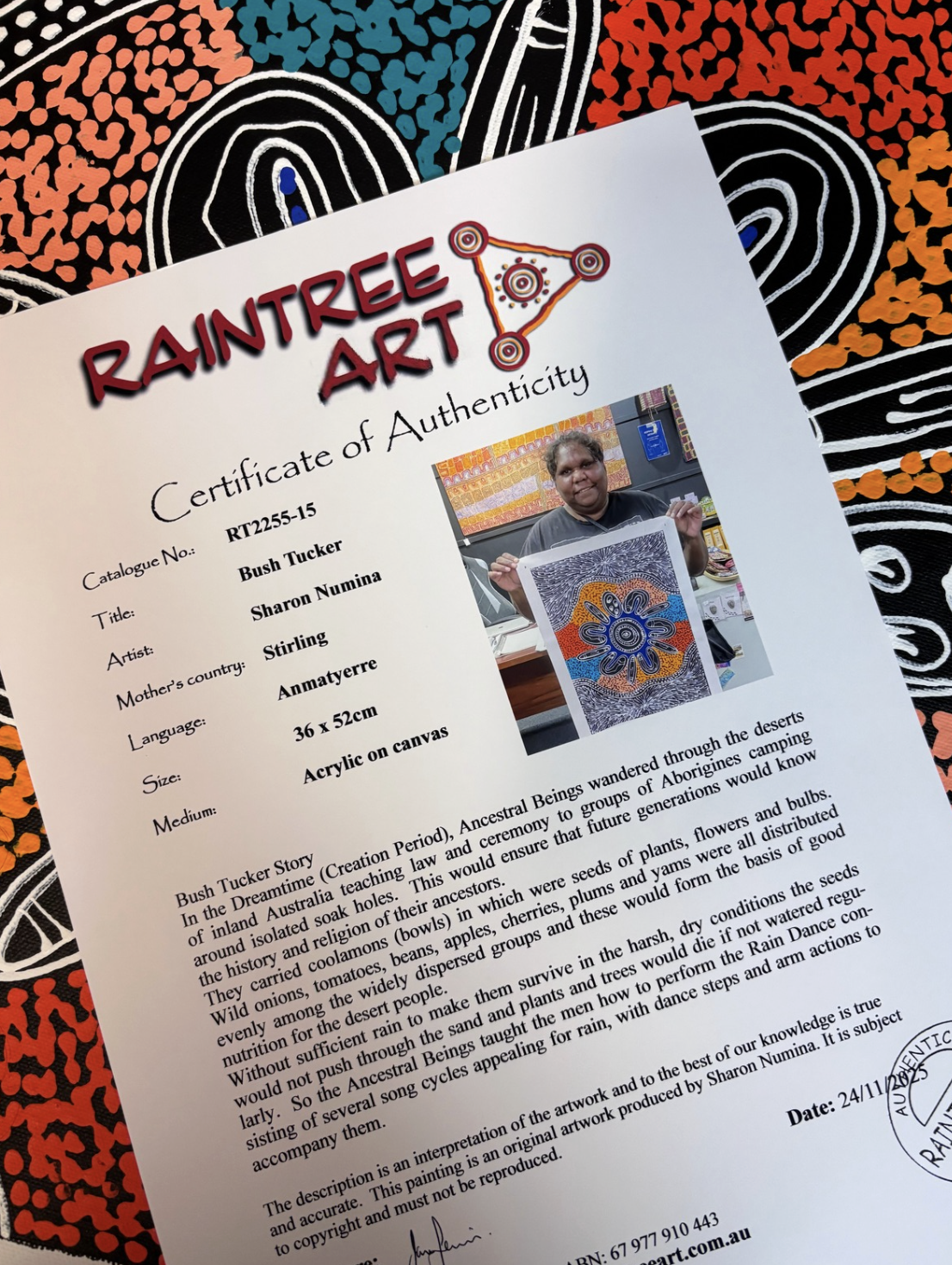 Sharon is the youngest of the celebrated Numina sisters, whose bold, confident, and colourful paintings are enjoyed in homes throughout Australia and all over the world. Her sisters are Selina, Louise, Caroline, Jacinta and Lanita – and each of the Numina sisters are highly regarded Aboriginal Artists in their own right. Sharon, her sisters and two brothers are the children of Barbara Pananka Price and the late Douglas Petyarre, and it was two of Douglas’ sisters – the internationally-renowned Aboriginal Artists Gloria and Kathleen Petyarre – who taught their nieces to paint the Bush Medicine Leaf ceremony (Aunty Gloria) and Thorny Lizard Dreaming (Aunty Kathleen). The Numina Sisters are also the great nieces of Emily Kngwarreye and Kudditji Kngwarreye, who along with Minnie Pwerle and Ada Bird Petyarre, are the most internationally acclaimed artists of the Aboriginal Art Movement of the Utopia Aboriginal Lands of the Eastern Desert that emerged in the 1970s.