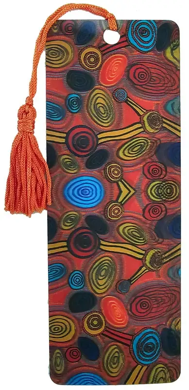 Add a touch of vibrant culture to your favourite book with this striking 3D bookmark. Featuring authentic Aboriginal artwork, this piece uses a specialized depth effect that makes the intricate patterns and “dot work” styling appear to lift off the surface, creating a mesmerizing visual experience.