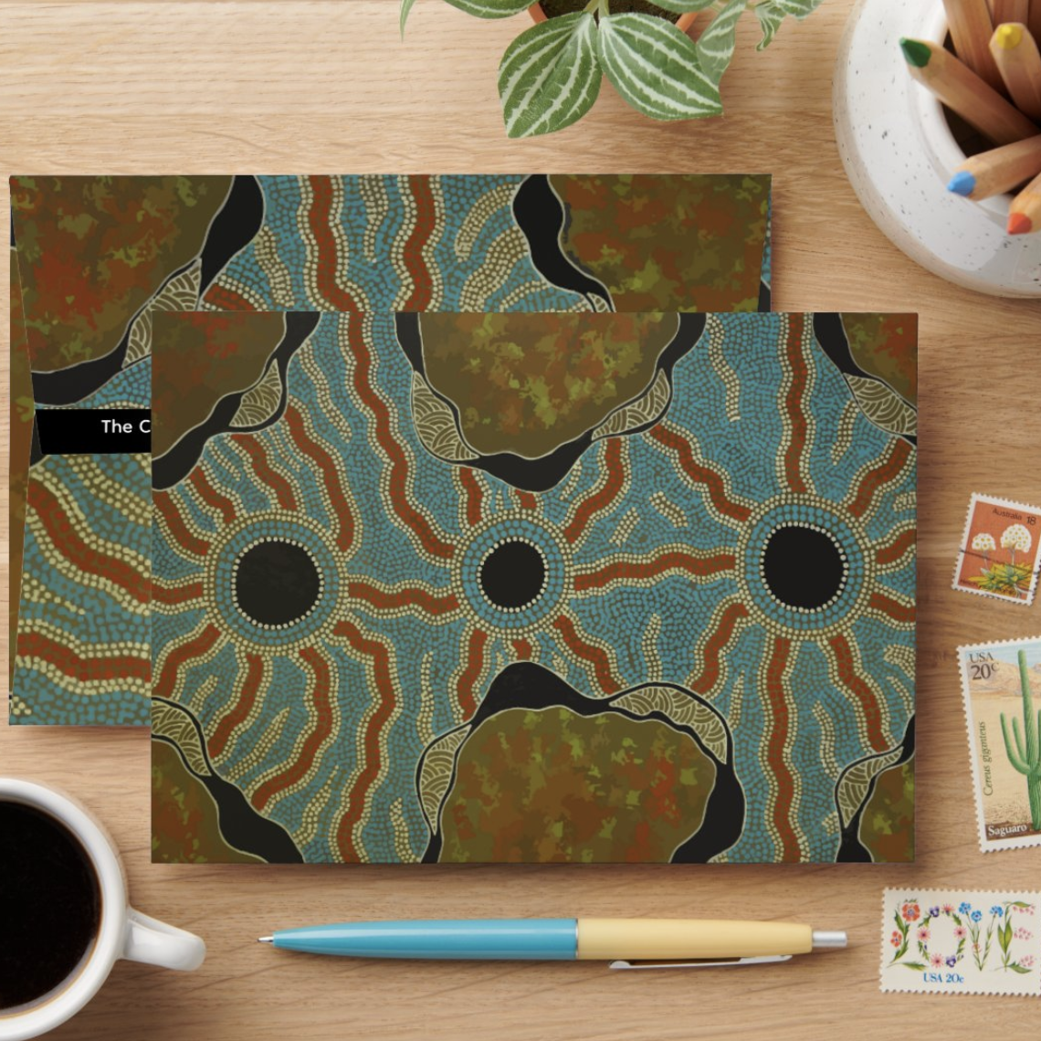 The Cooper Basin (Set 5) - Aboriginal Art designed Linen Envelope (185mm x 135mm)