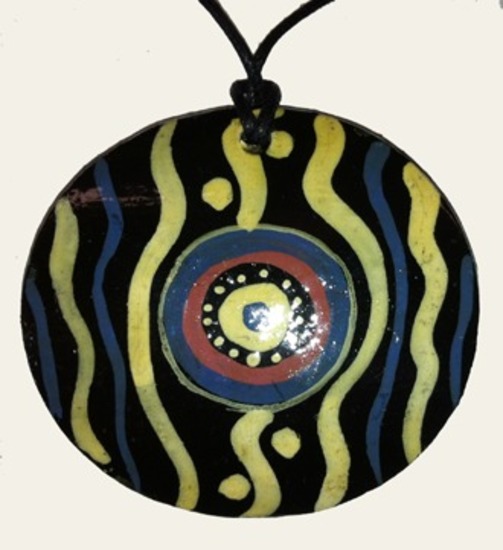 Striking painted laquered pendant depicting design by - Tobwabba Arts