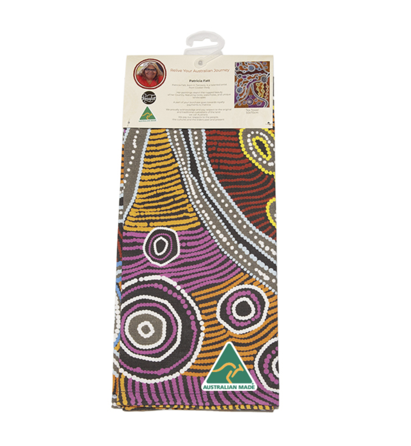 Patricia Fatt is a talented Yankunytjatjara artist from Coober Pedy, South Australia, whose vibrant works reflect a deep connection to Country and culture. Through her artwork, Patricia shares the desert landscapes and water sources of her ancestral lands — rock holes, waterholes, and the ochre-rich hues of the painted desert.
