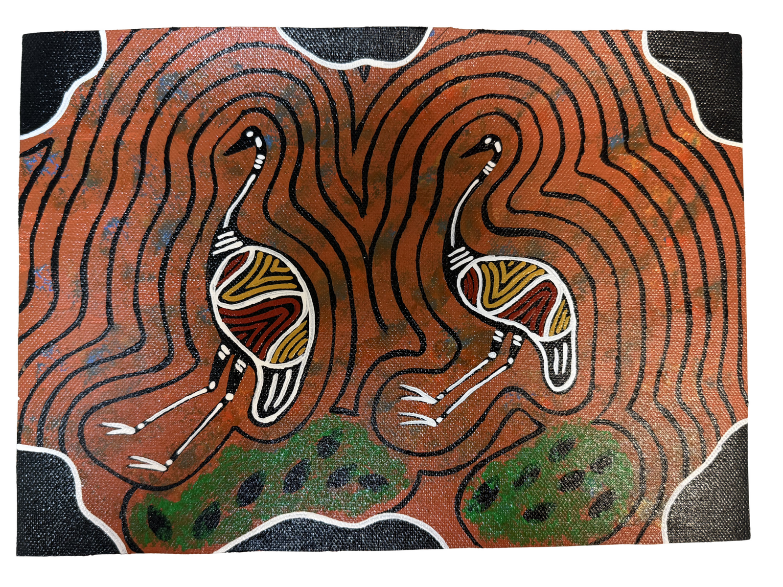 Unstretched Handpainted Aboriginal Art A4 Canvas (21cm x 29cm) - Emu Connection by Michael J Connolly (Munda-gutta Kulliwari)