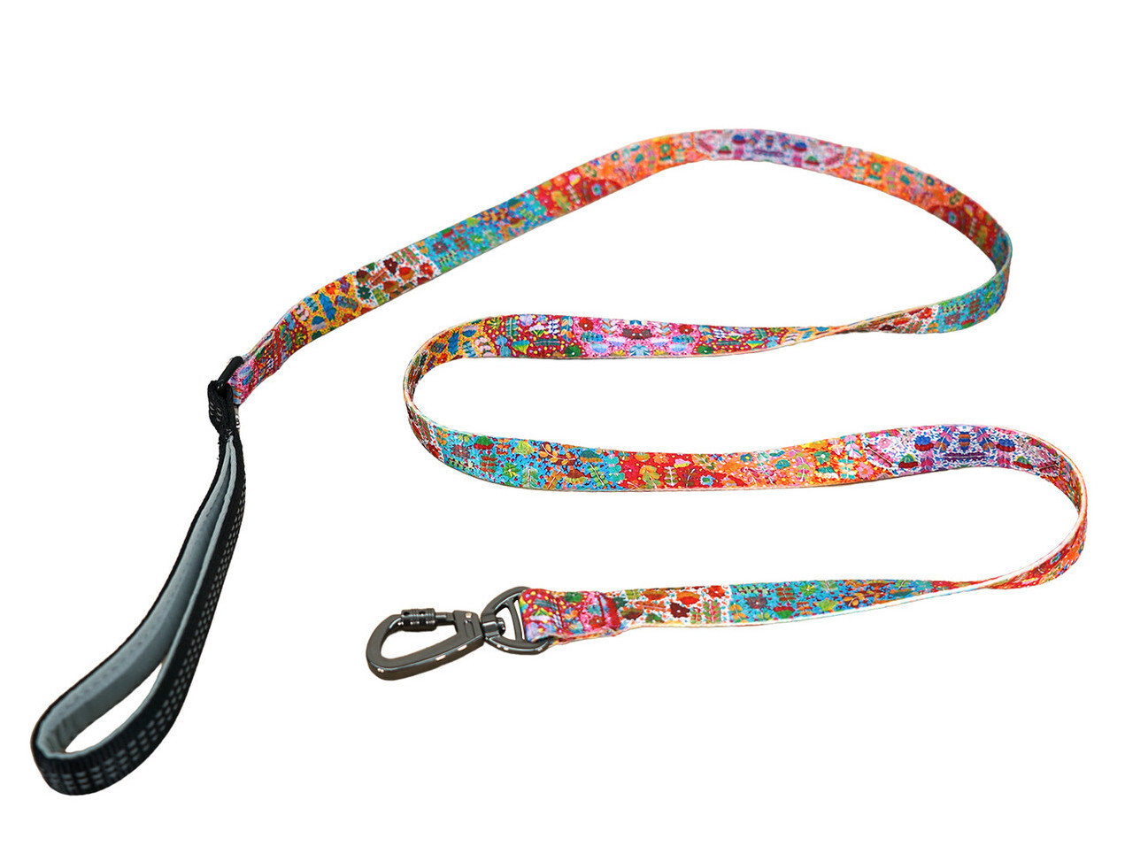 Each leash features one of 5 different designs by Aboriginal artists from the Utopia region of Central Australia and has a matching collar available in 3 sizes