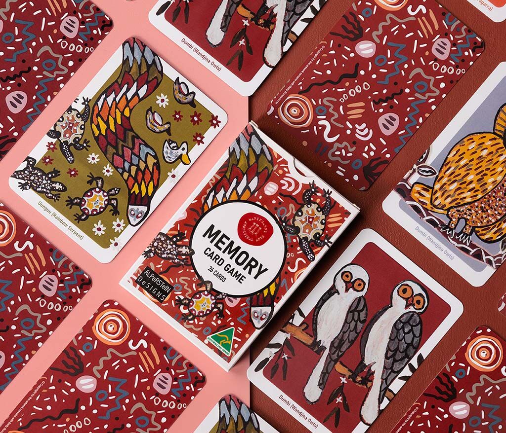 Have fun and learn at the same time with the fantastic Memory Card game featuring 26 cards and 13 original artworks by Betty Bundamurra, courtesy Waringarri Artists.