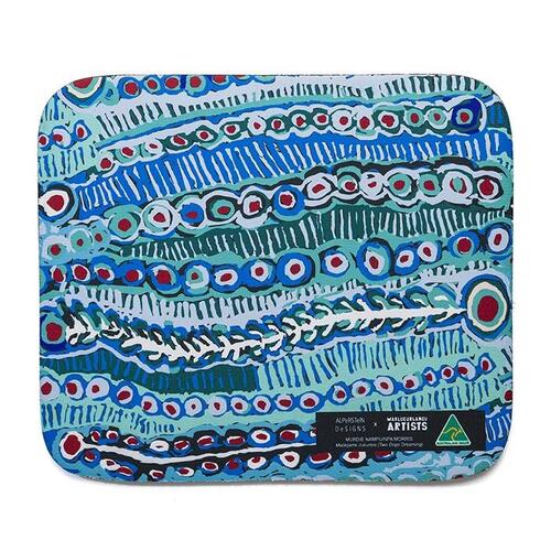 Neoprene mousepad featuring artwork by Murdie Nampijinpa Morris from Warlukurlangu Artists.
