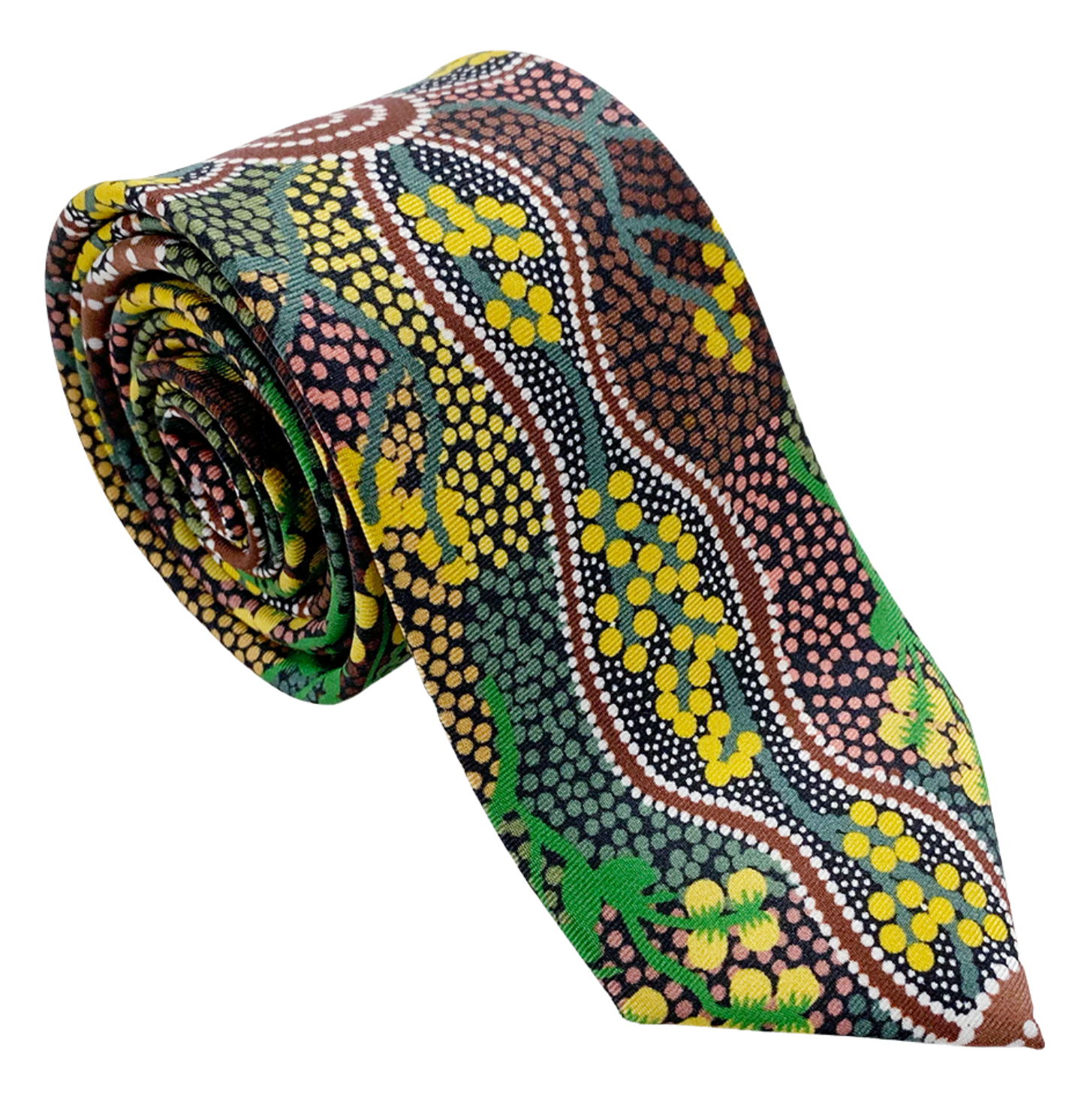 Pure Silk (manufactured in South Korea) designed in Australia by Australian Aboriginal Artists (royalties paid)