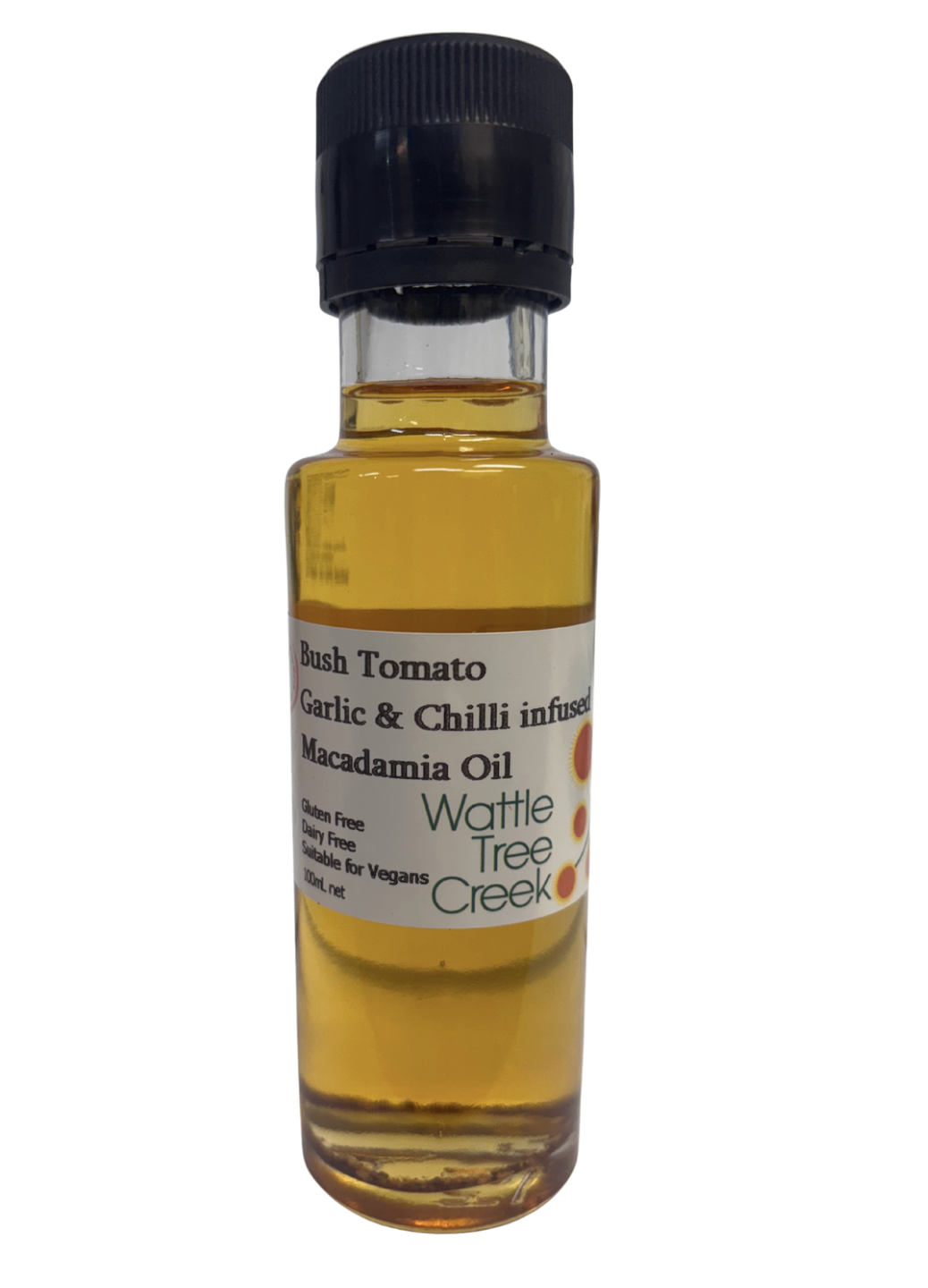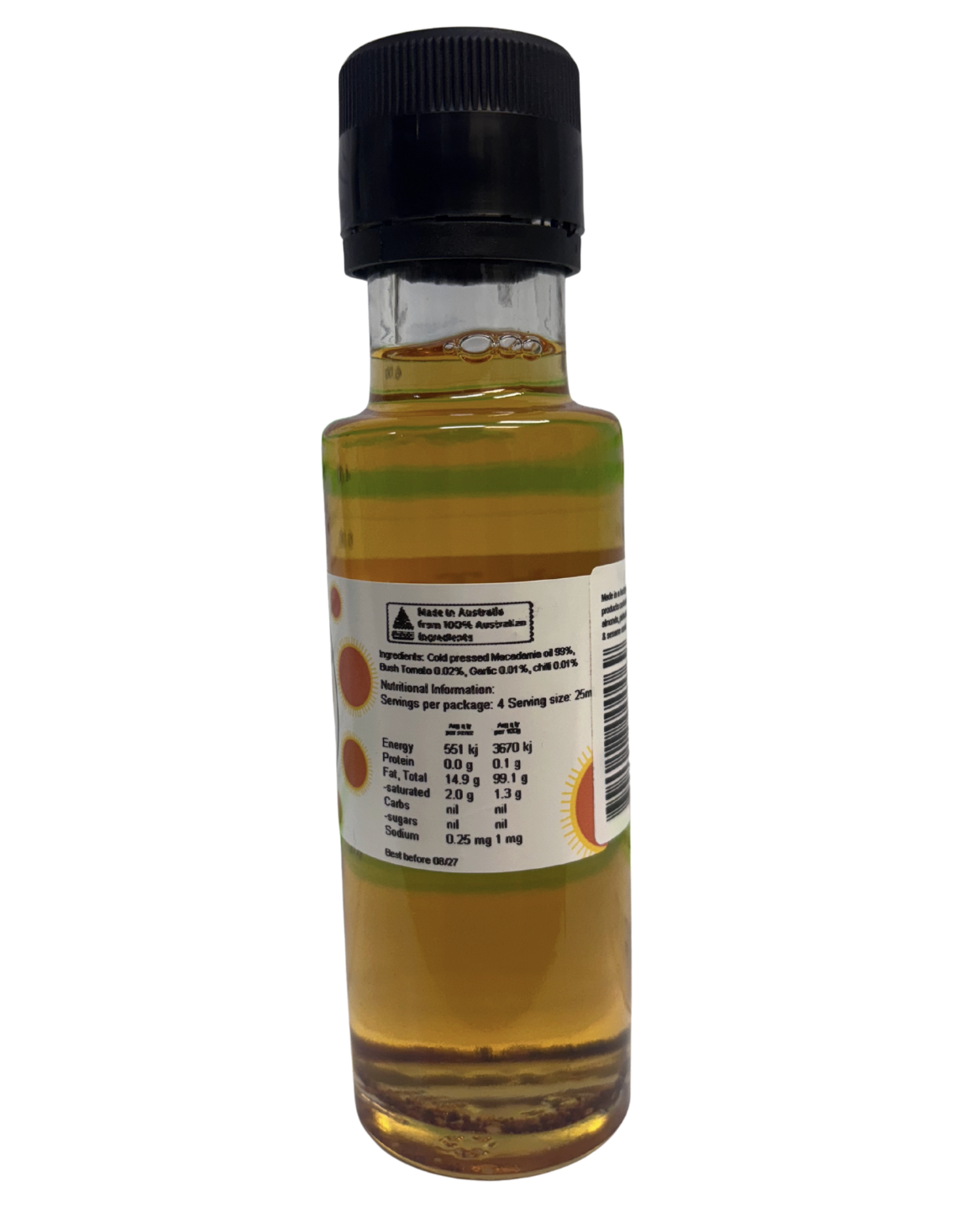 Ingredients: pure cold pressed macadamia oil, bush tomato, garlic, chilli