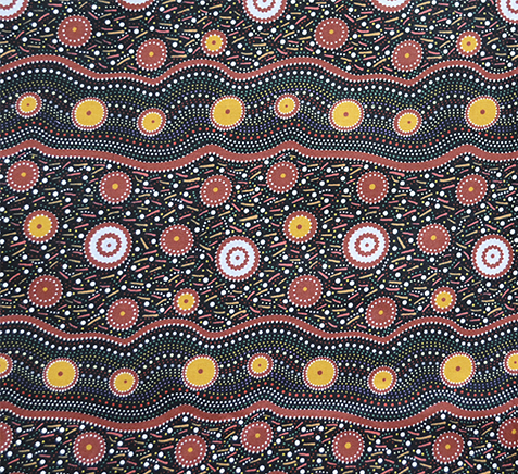 About the Design: Audrey Martin Napanangka is a well-known Aboriginal Artist from Yuendumu central. She is well experienced with Bush Tucker, Bush Onion, Bush Coconut and another bush dreamings. Her colour sense for the respective dreaming is excellent. Despite her artwork, Audrey is a very experienced bush tucker collector. Normally she collects Bush Tucker, Bush Onion, Bush Coconut, Bush Banana and many other. Audrey is skilled in collecting flowers, fruits, grubs, caterpillars, honey ants and many more. Being an Aboriginal artist, she draws numerous images of bush beans, bush food. Audrey's artworks are colourful and attractive and many of her artworks are published in books & magazines. Alice Spring City Council featured Audrey’s work in various places.